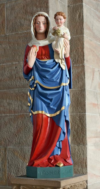 Die Statue der Maria im Chorraum stellt eine Kopie der aus dem 14. Jh. stammenden „Limburger Madonna“ dar, die heute in der Kirche Maria im Kapitol in Köln aufbewahrt wird.
