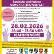 Herzliche Einladung zur Mahnwache des „Bündnis für den Erhalt von Demokratie & Vielfalt“ am 28. Februar von 14:00 bis 16:00 Uhr am Stadtplatz in Deidesheim. weiterlesen